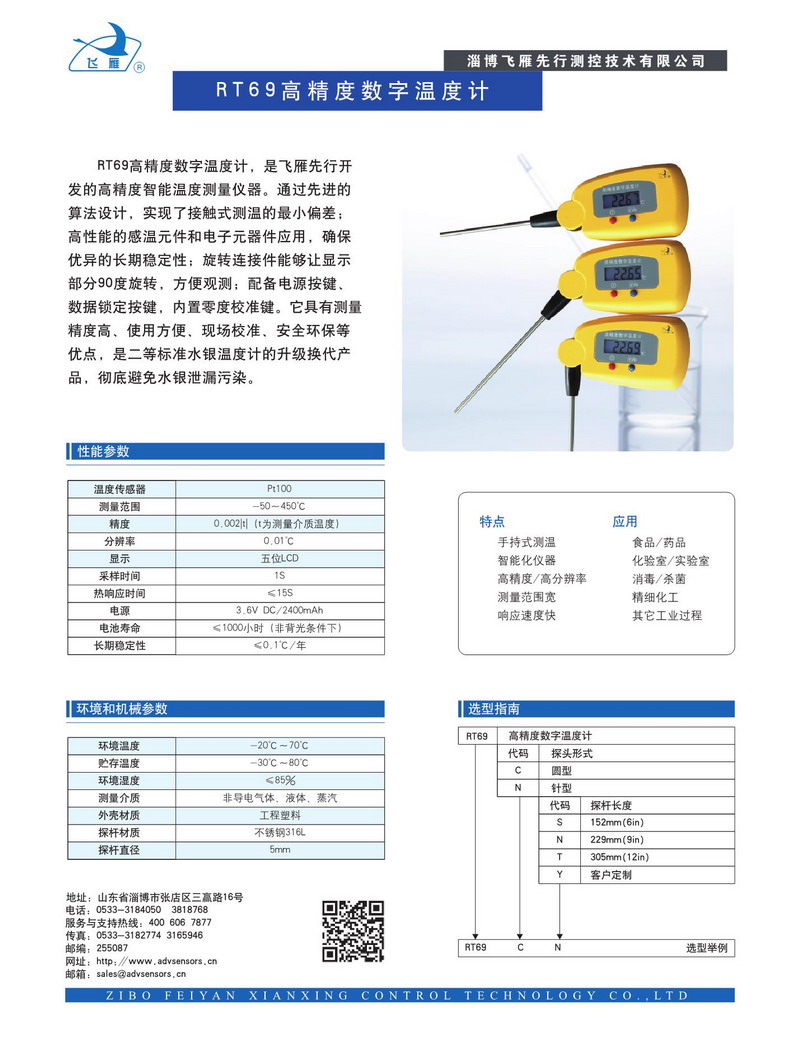 RT69高精度數(shù)字溫度計,是飛雁先行開發(fā)的高精度智能溫度測量儀器。通過先進的算法設計,實現(xiàn)了接觸式測溫的最小偏差;高性能的感溫元件和電子元器件應用,確保優(yōu)異的長期穩(wěn)定性;旋轉連接件能夠讓顯示部分90度旋轉,方便觀測;配備電源按鍵、數(shù)據(jù)鎖定按鍵,內(nèi)置零度校準鍵。 它具有測量精度高、使用方便、現(xiàn)場校準、安全環(huán)保等優(yōu)點,是二等標準水銀溫度計的升級換代產(chǎn)品,徹底避免水銀泄漏污染。