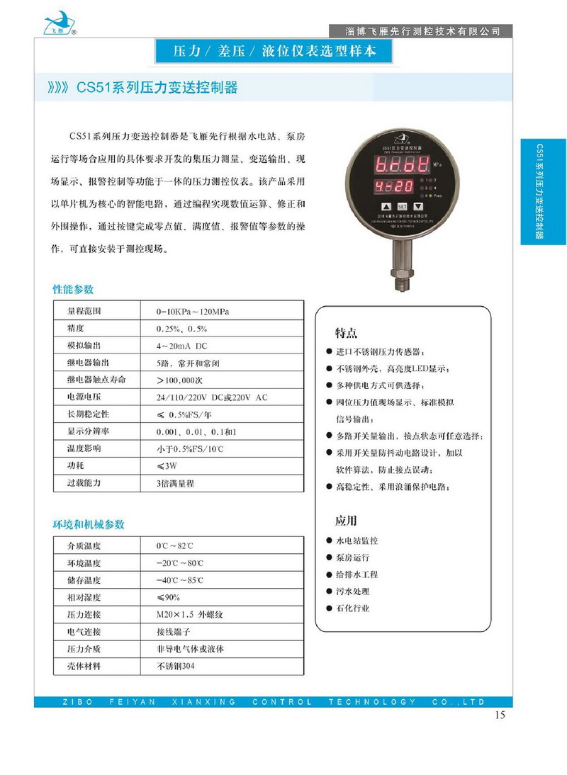 CS51系列壓力變送控制器是飛框先行根據(jù)水電站、泵房運(yùn)行等場(chǎng)合應(yīng)用的具體要求開(kāi)發(fā)的集壓力測(cè)量、變送輸出、現(xiàn)場(chǎng)顯示、報(bào)警控制等功能于一體的壓力測(cè)控儀表。該產(chǎn)品采用以單片機(jī)為核心的智能電路,通過(guò)編程實(shí)現(xiàn)數(shù)值運(yùn)算,修正和外圍操作,通過(guò)按鍵完成零點(diǎn)值,滿度值、報(bào)警值等參數(shù)的操作,可直接安裝于測(cè)控現(xiàn)場(chǎng)。