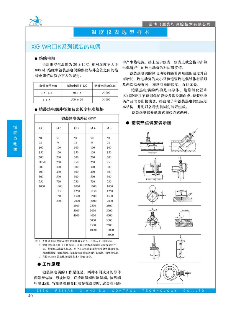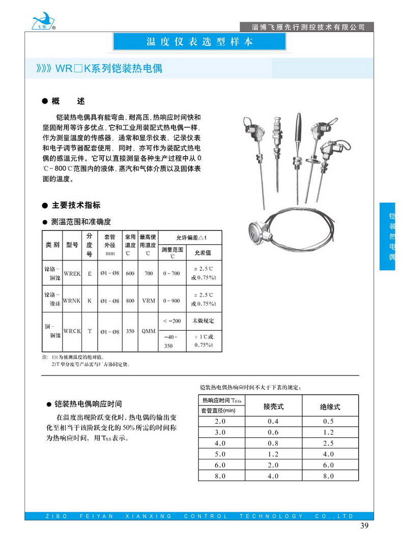 鎧裝熱電偶具有能彎曲、耐高壓、熱響應(yīng)時(shí)間快和堅(jiān)固耐用等許多優(yōu)點(diǎn).它和工業(yè)用裝配式熱電偶一樣,作為測(cè)量溫度的傳感器,通常和顯示儀表.記錄儀表和電子調(diào)節(jié)器配套使用,同時(shí),亦可作為裝配式熱電偶的感溫元件。它可以直接測(cè)量各種生產(chǎn)過(guò)程中從0C~800℃范圍內(nèi)的液體、蒸汽和氣體介質(zhì)以及固體表面的溫度。