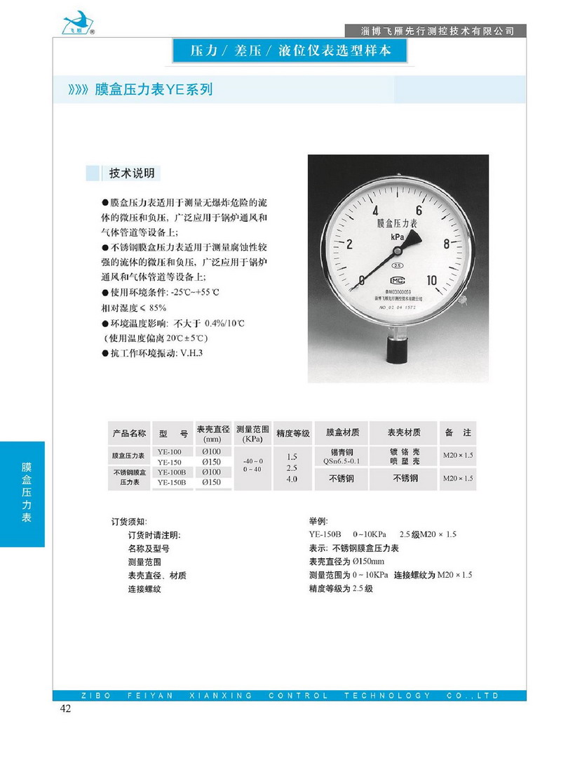 ●膜盒壓力表適用于測量無爆炸危險的流體的微壓和負(fù)壓,廣泛應(yīng)用于鍋爐通風(fēng)和氣體管道等設(shè)備上; ●不銹鋼膜盒壓力表適用于測量腐蝕性較強(qiáng)的流體的微壓和負(fù)壓,廣泛應(yīng)用于鍋爐通風(fēng)和氣體管道等設(shè)備上; ●使用環(huán)境條件:-25℃~+55℃ 相對濕度≤85% ●環(huán)境溫度影響:不大于0.4%/10℃ (使用溫度偏離20℃±5℃) ●抗工作環(huán)境振動:V.H.3