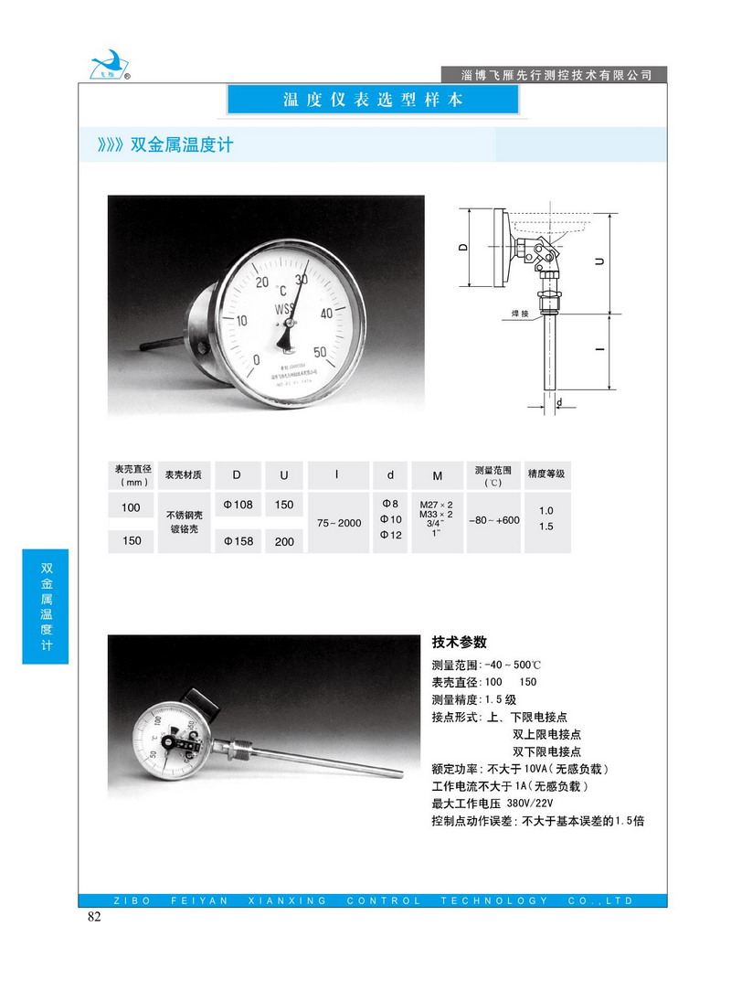 雙金屬溫度計是采用雙金屬片為感溫元件的一種適合測量和控制中,低溫管道設備溫度的工業(yè)儀表。該儀表具有線性好、反應靈敏、指示清晰,無汞害、抗震性好、多視角等優(yōu)點,廣泛應用于機械、輕紡、化工船舶.制藥、食品等生產(chǎn)過程中的測溫和控制。